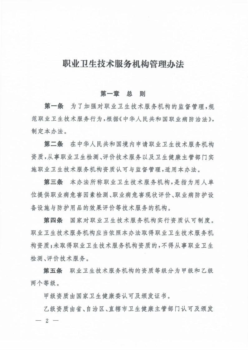 職業(yè)衛(wèi)生技術(shù)服務(wù)機構(gòu)管理辦法(國家衛(wèi)生健康委令第4號)
